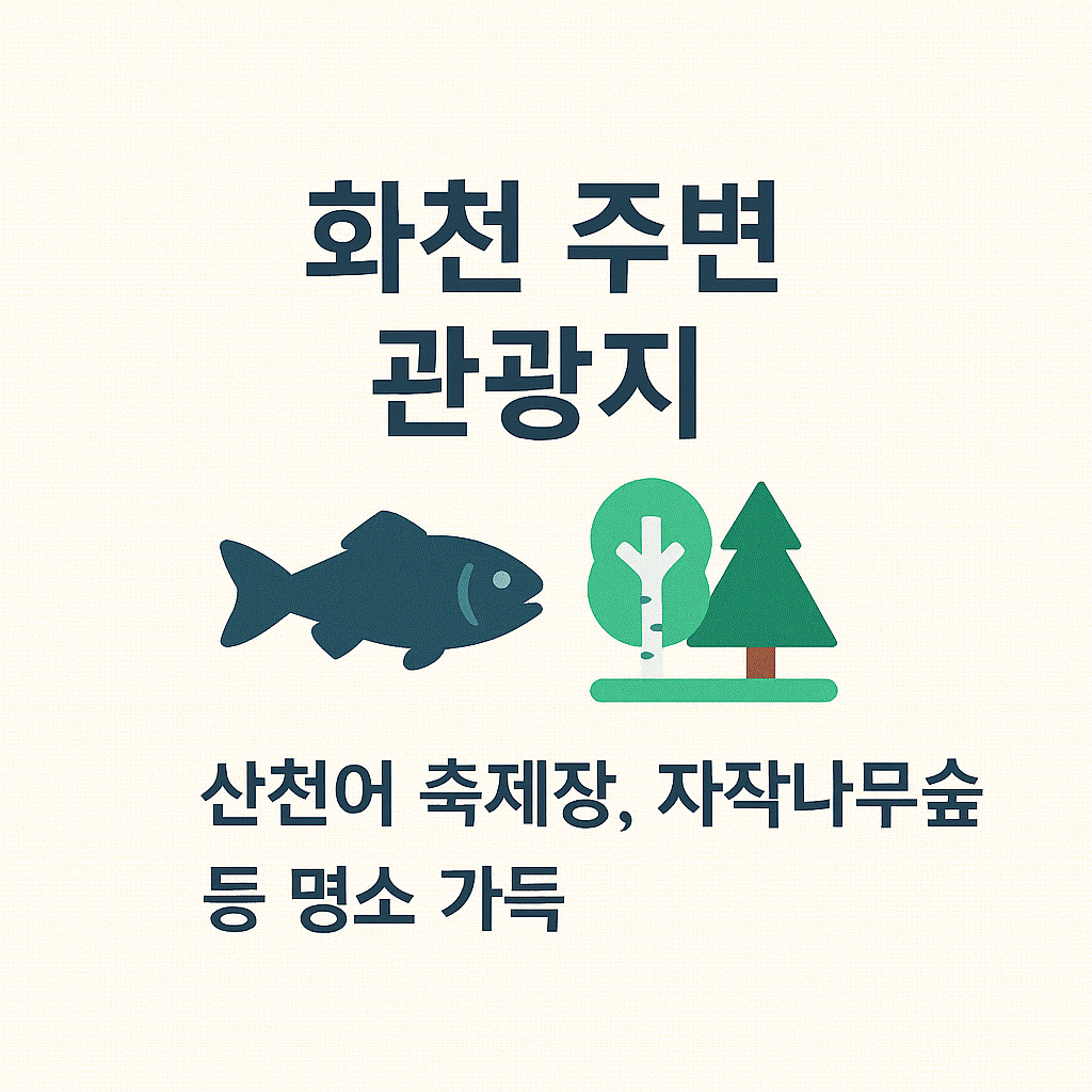 화천은 자연경관이 뛰어나고 다양한 관광 명소가 있는 지역으로, 축제 방문과 함께 주변 관광지를 둘러보면 더욱 풍성한 여행이 됩니다. 아래는 화천 토마토 축제 인근에서 추천하는 주요 관광지입니다.
