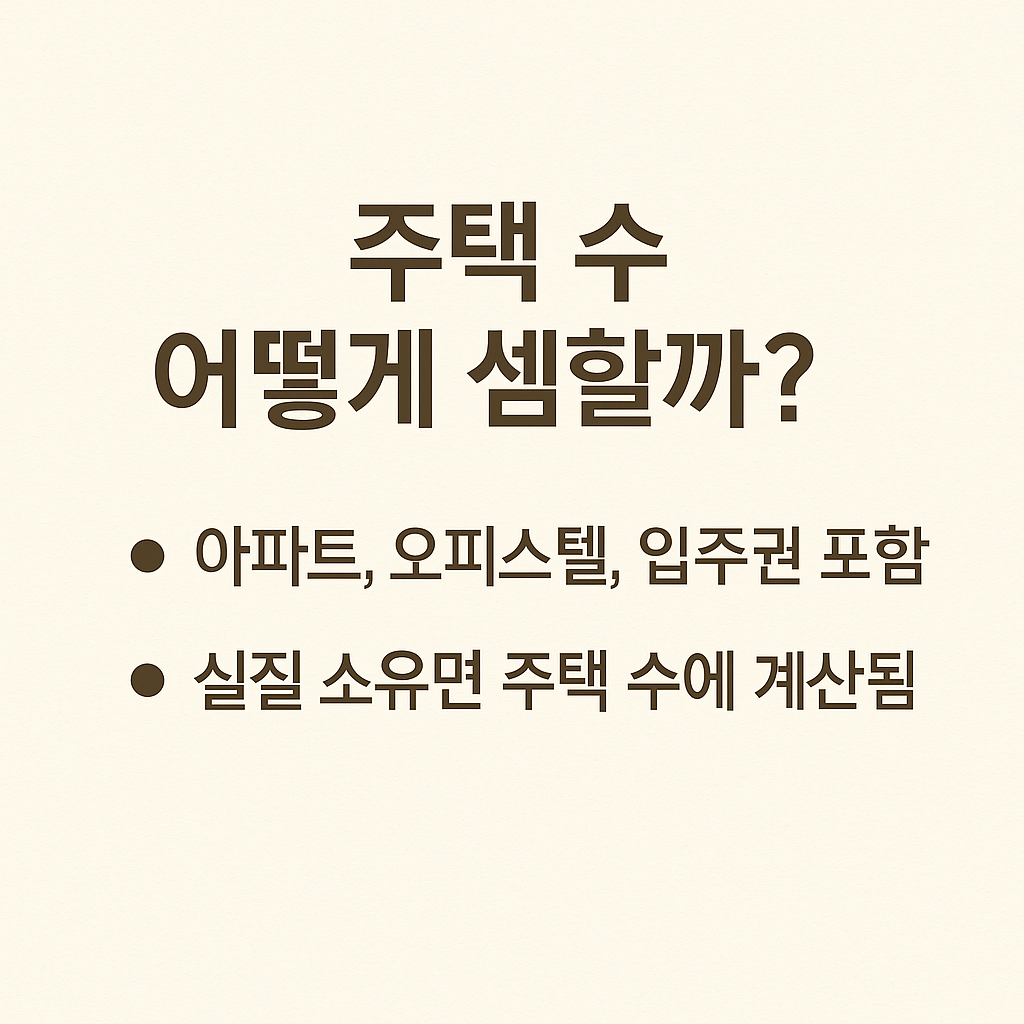 - 취득·등기 진행 중이라도 소유권이전청구권 행사 등 사실상 소유권 확보 상태면 주택 수에 포함됩니다.