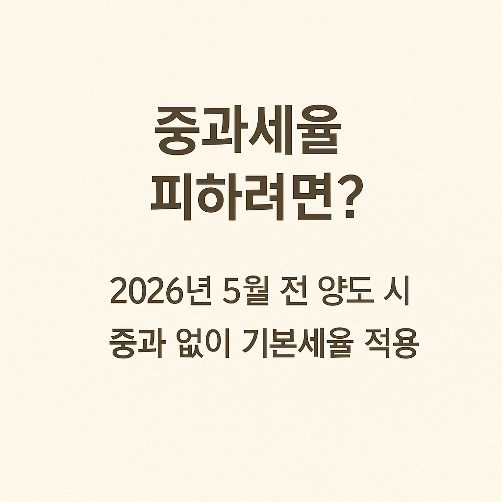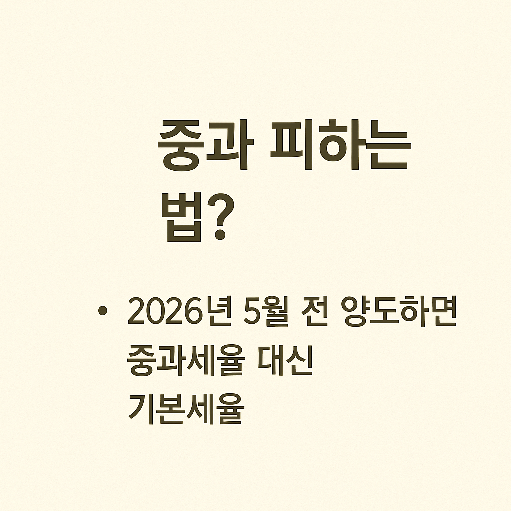 - 다만, 2026년 5월까지는 중과세가 일시 배제되어 기본세율 적용이 가능합니다
