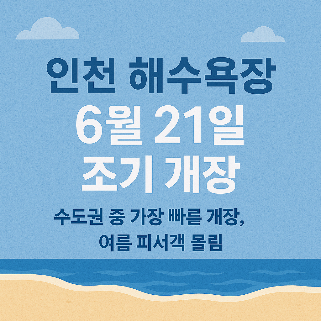 요약하면, 수도권 및 서해안 지역은 6월 21일을 기점으로 본격 개장에 돌입하였고, 다양한 체험형 관광 콘텐츠와 함께 여름철 피서지로서의 위상을 강화하고 있습니다. 서울·경기 인근에서 당일치기로 다녀올 수 있는 점도 이 지역의 큰 장점입니다.