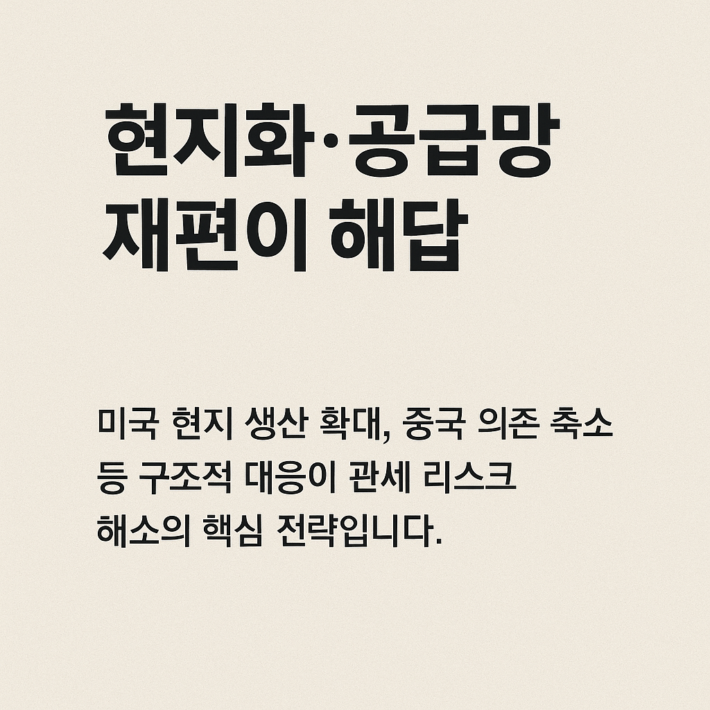 - 미국 내 생산/판매거점 강화: 현지화 전략으로 시장 접근 비용 최소화