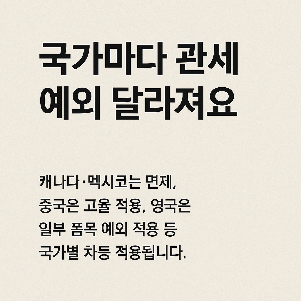 | 국가 | 기본 관세 적용 | 추가 고율 대상 | 면제 품목 |