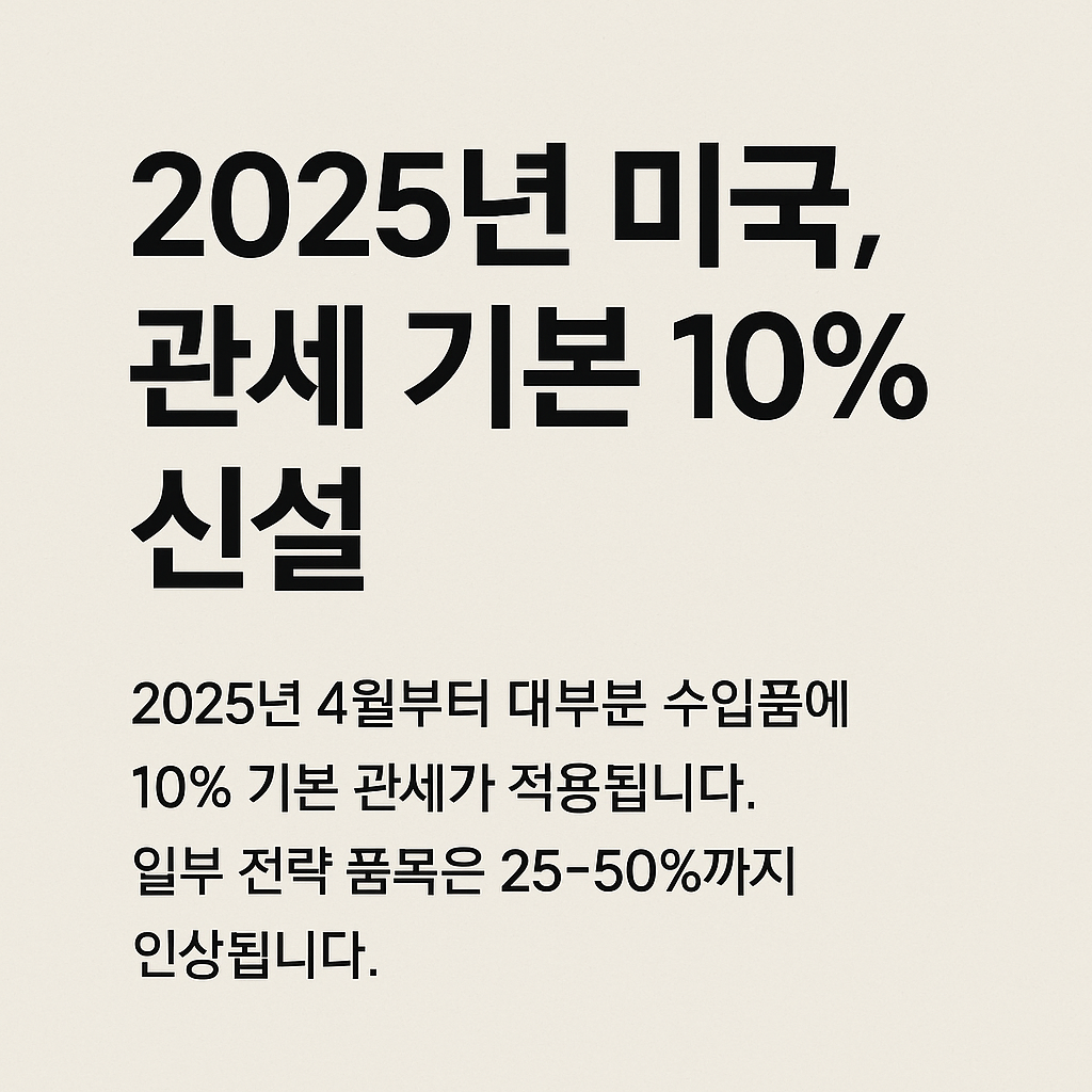 이번 개편의 핵심은 기본 관세 10%의 일괄 적용과, 주요 전략 품목에 대한 고율 관세 강화입니다. IEEPA(국제긴급경제권한법)에 근거한 대통령 행정명령으로, 2025년 4월 5일부터 미국은 대부분의 수입 제품에 기본 10%의 관세를 부과하기 시작했습니다.