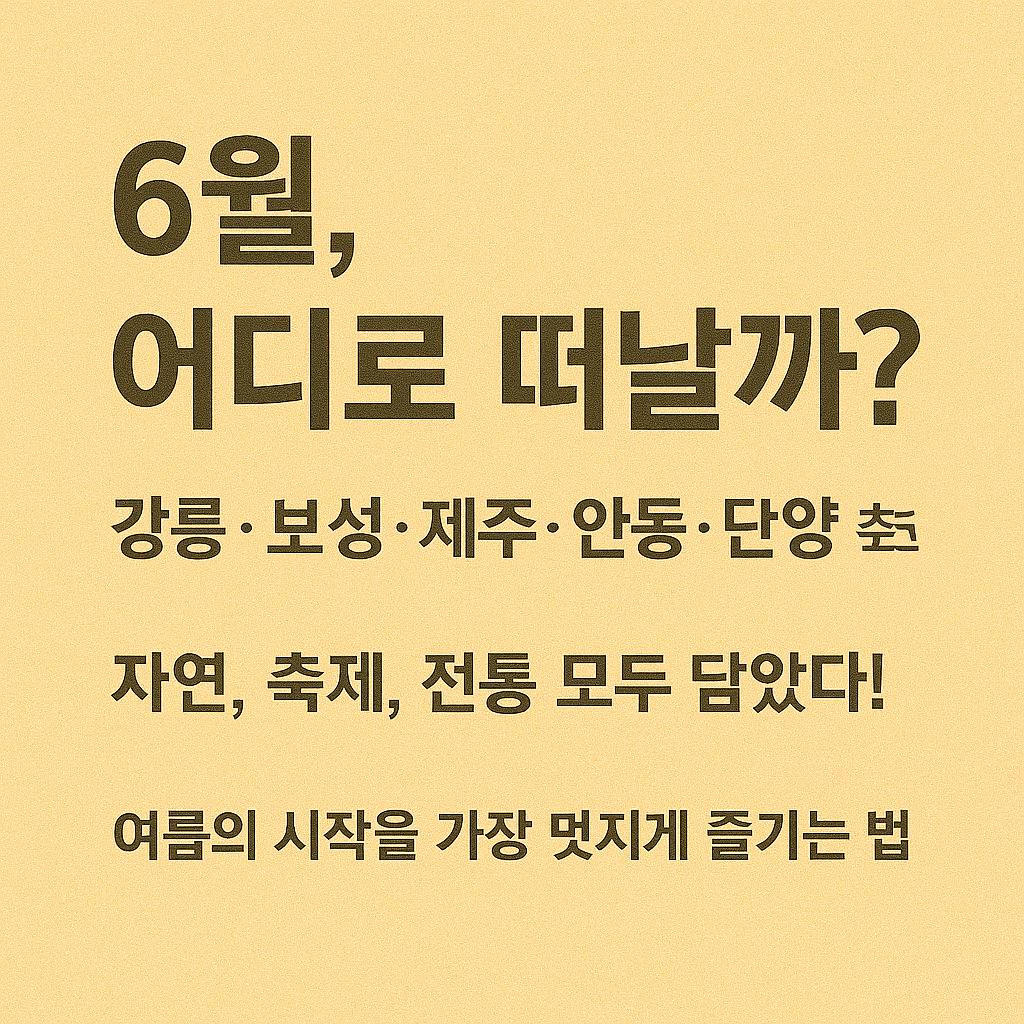 6월은 무더위가 시작되기 전, 선선한 바람과 화창한 날씨로 여행을 떠나기 가장 좋은 시기입니다. 전국 곳곳에서 다양한 6월 축제가 개최되고, 푸르른 자연과 계절감을 오롯이 느낄 수 있는 여행지들이 많습니다. 이번 글에서는 6월에 가볼 만한 국내 여행지를 테마별로 정리해, 여행을 계획하는 데 도움이 되는 정보를 소개합니다.