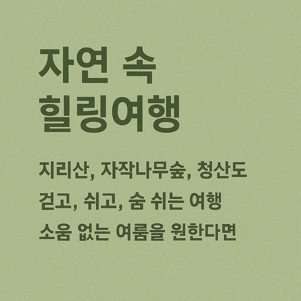 - 힐링 자연 여행지: 일상의 피로를 자연 속에서 풀고 싶을 때