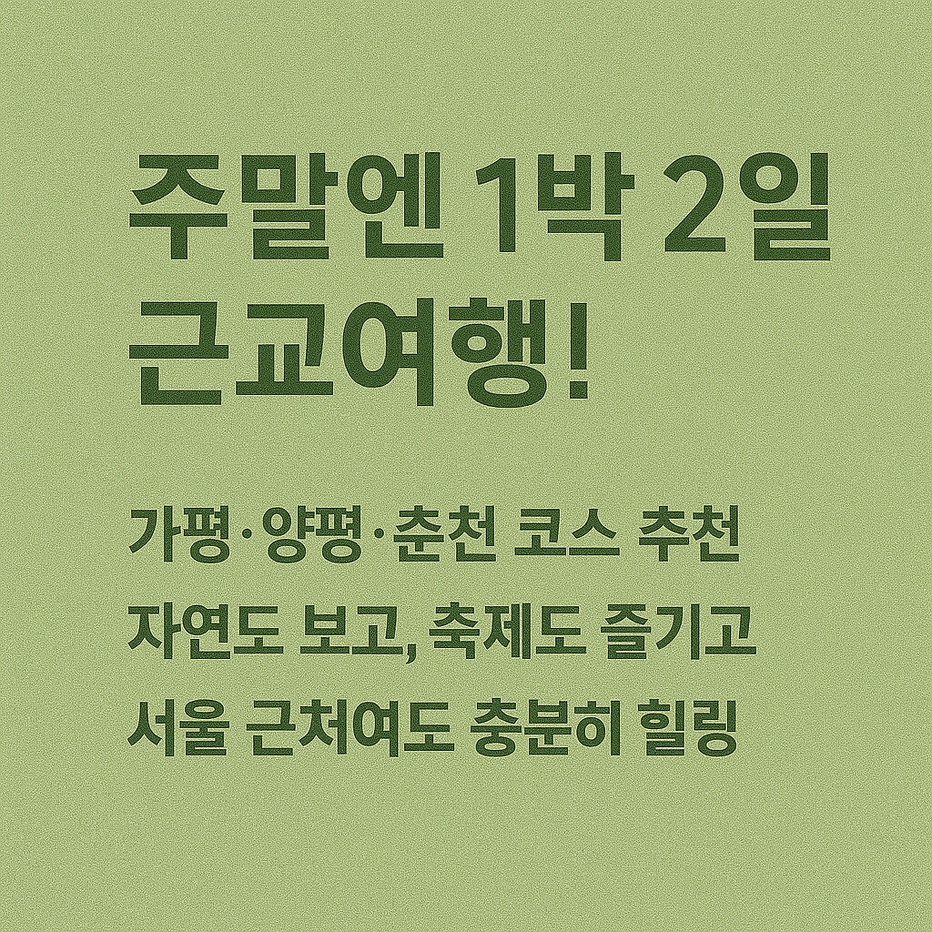 - 근교 1박 2일 여행지: 주말을 효율적으로 활용하고 싶을 때