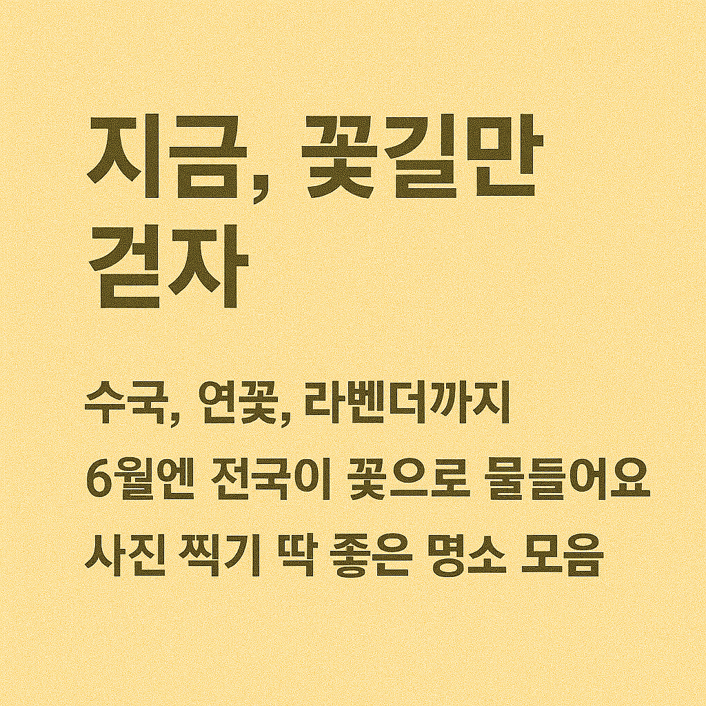 이처럼 꽃 명소들은 전국에 다양하게 분포되어 있으며, 6월 축제와 함께 즐기면 더욱 특별한 여행이 됩니다. 사진 명소로 유명한 곳은 대부분 포토존, 산책로, 체험 시설 등이 함께 마련되어 있어 하루 코스로도 손색없습니다.