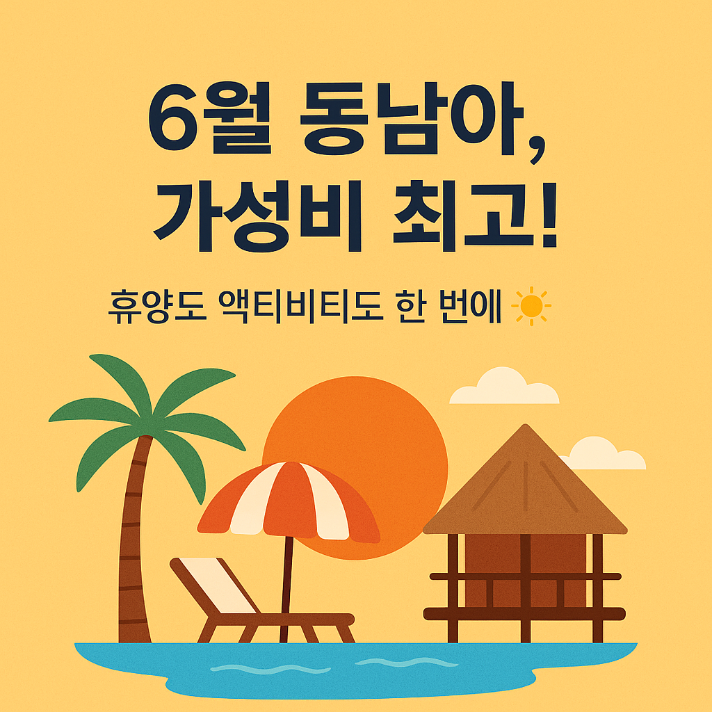 전체적으로 동남아는 6월에도 충분히 매력적인 여행지이며, 우기라는 리스크가 있더라도 지역을 잘 선택하면 오히려 적은 인파, 특가 항공권, 가성비 숙소 등 다양한 이점을 누릴 수 있습니다. 6월 해외여행지 추천 리스트에서 '휴양'과 '경제성'을 동시에 고려한다면, 발리, 보홀, 다낭은 반드시 검토해 볼 가치가 있는 목적지입니다.