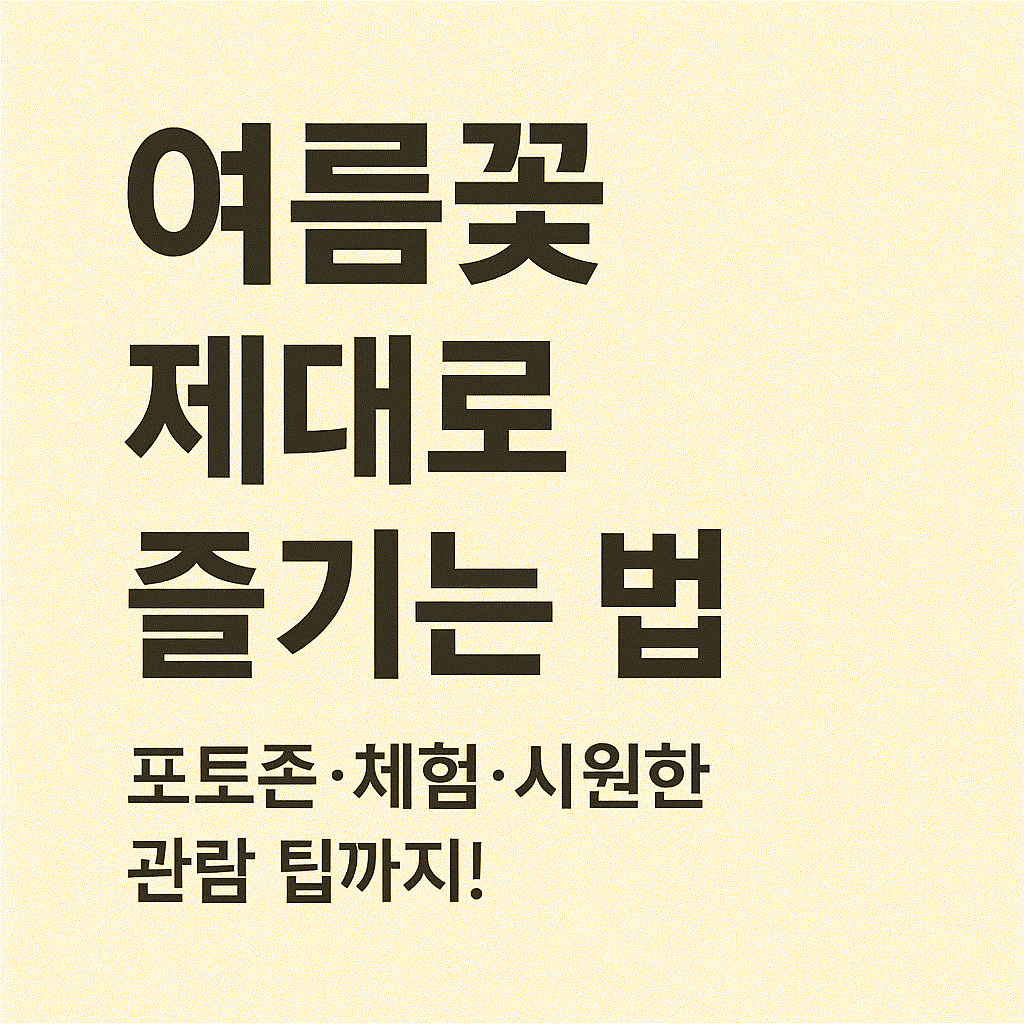 7월에 개최되는 전국 꽃축제 정보를 한눈에 정리했습니다. 수도권부터 지방까지 각 지역별 대표 축제와 함께, 꽃축제를 더 풍성하게 즐길 수 있는 코스도 안내드립니다. 여름 꽃축제 계획 전 참