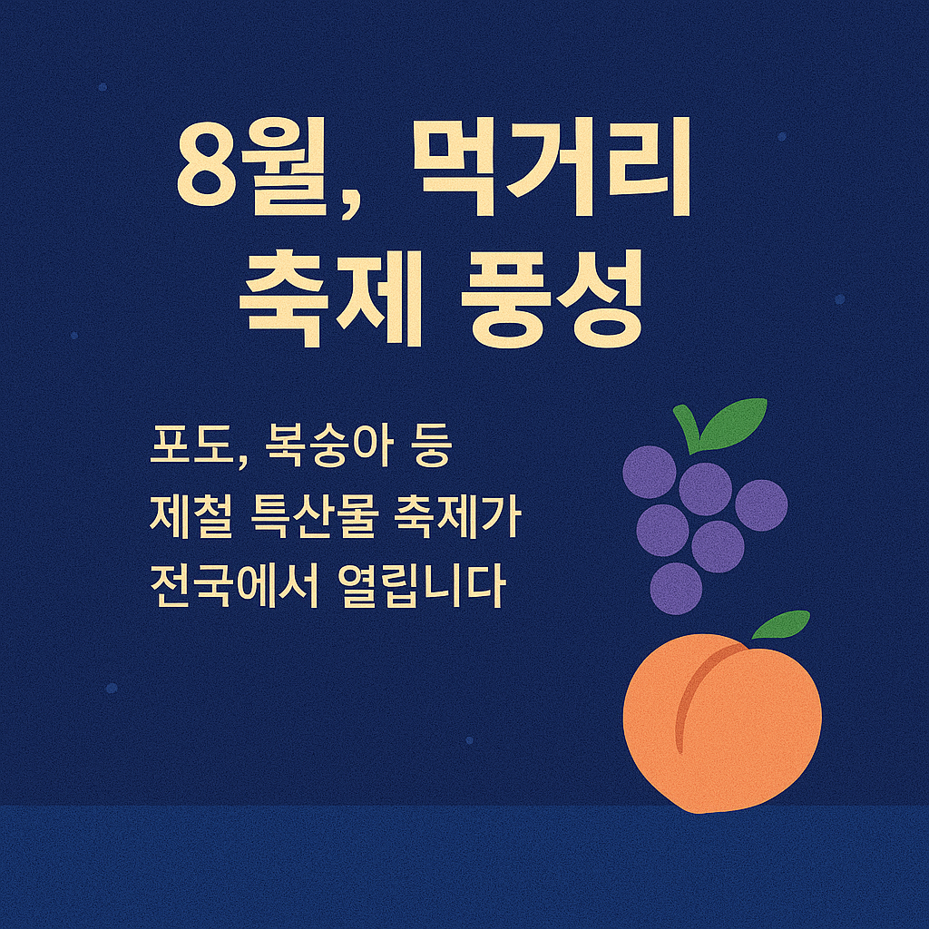 | 옥천 포도복숭아축제 | 8.1~8.3 | 충북 옥천읍 일대 | 과일 시식·직거래 장터 |