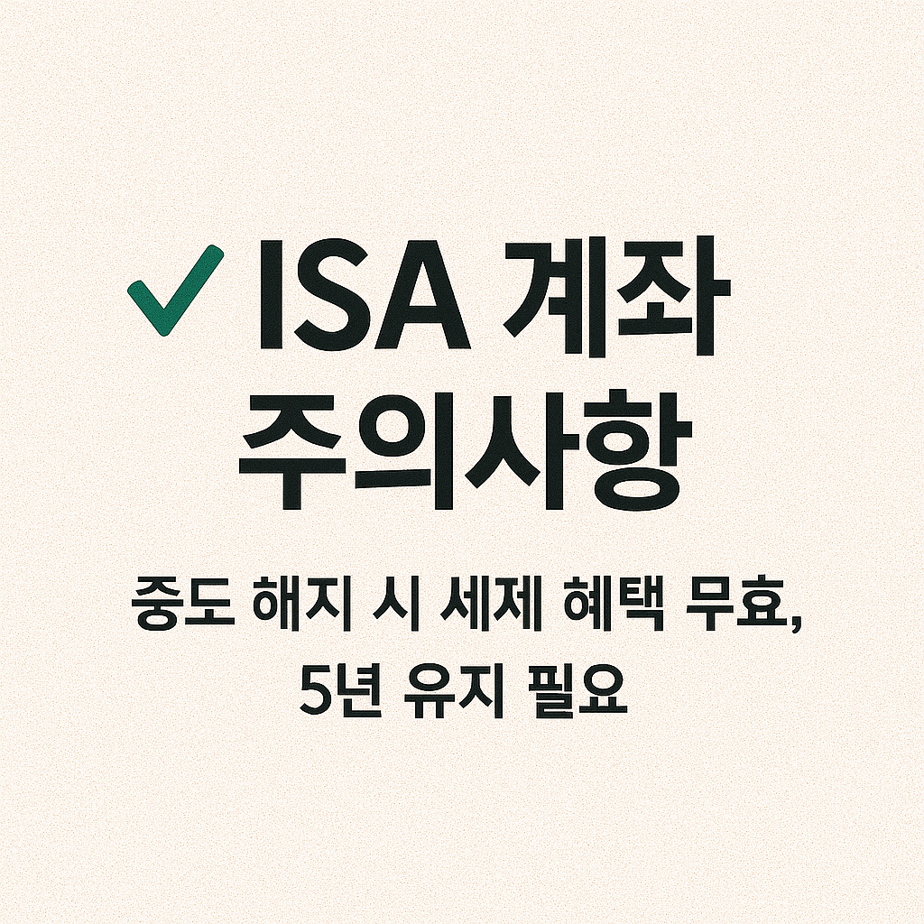 - 단기 투자는 부적합: ISA는 장기 절세 상품, 단기 수익 목표와는 맞지 않음