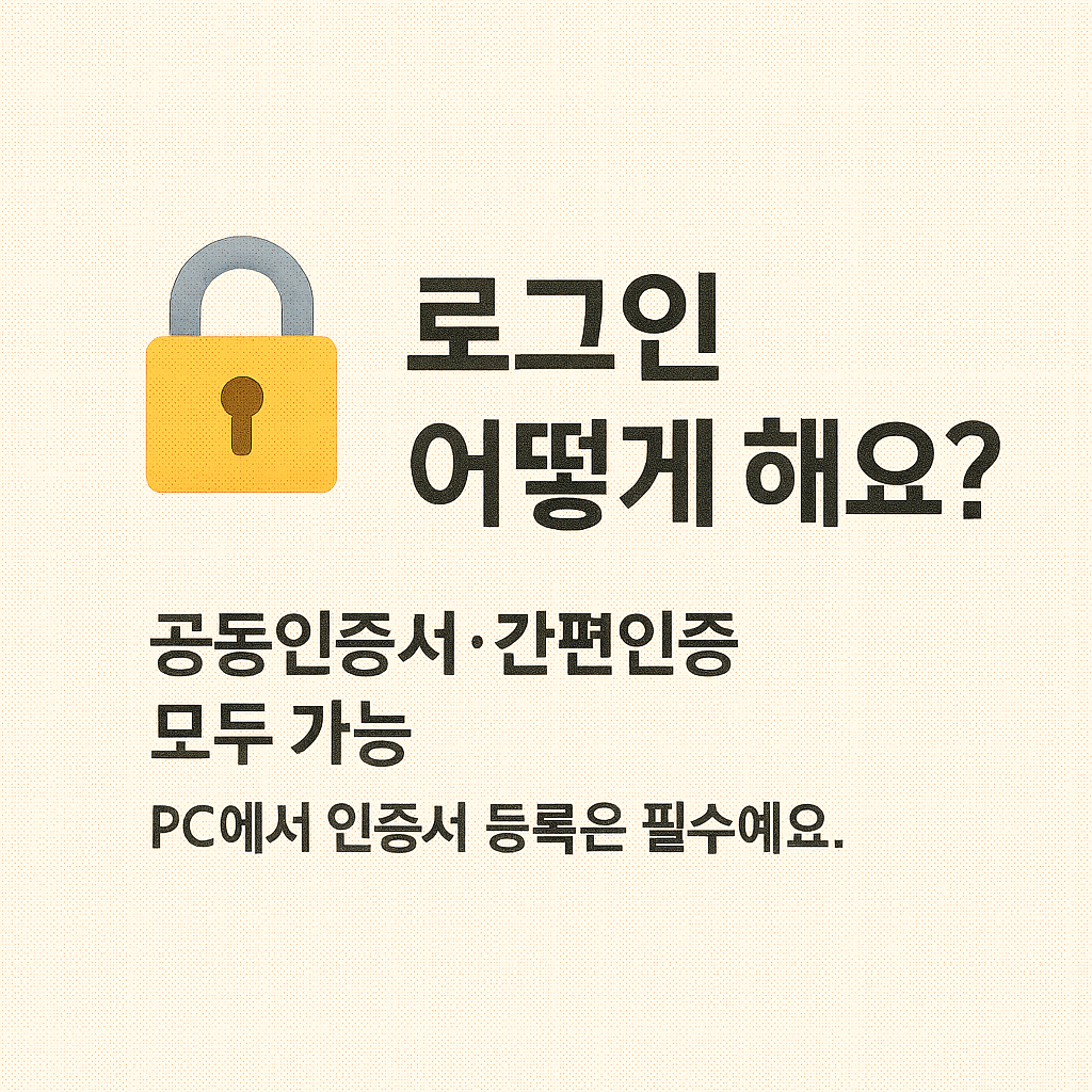 | 간편인증 | PASS, 카카오, 금융인증서 등으로 빠른 로그인 | 앱 설치 필요, 일부 기능 제한 시 인증서 요구 |