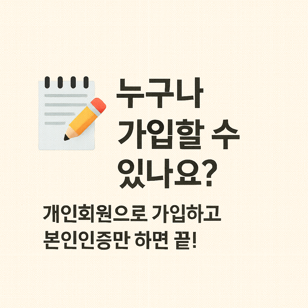 참고: 국민내일배움카드 신청을 목적으로 가입할 경우, 반드시 개인회원으로 가입해야 하며, 이후 로그인 후 카드 신청 메뉴를 이용할 수 있습니다.